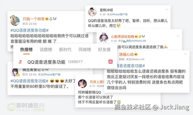 2019年4月16日QQ语音消息新特性突然登上微博热搜,QQ铁粉瞬间集结。是什么让129万人为QQ花式彩虹屁?为何微信却被吃瓜群众疯狂艾特?现在,让我为你揭秘QQ语音消息改版的设计旅程。