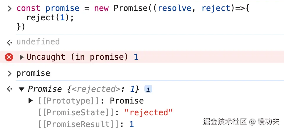 如果刚开始 promise 的状态是 rejected,会发生什么呢?