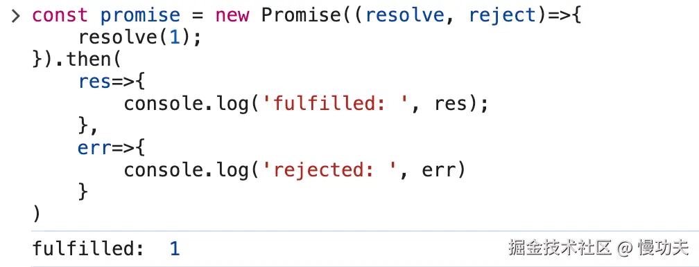 then 函数接受两个函数作为参数,当 promise 的状态是fulfilled, 就会调用第一个参数,当其状态为 rejected,就会调用第二个参数。