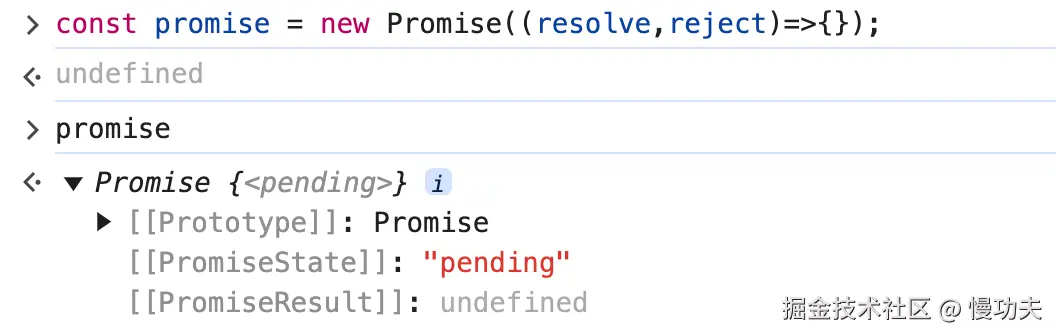 上面创建了一个 promise 示例,这个 promise 的状态是 pending