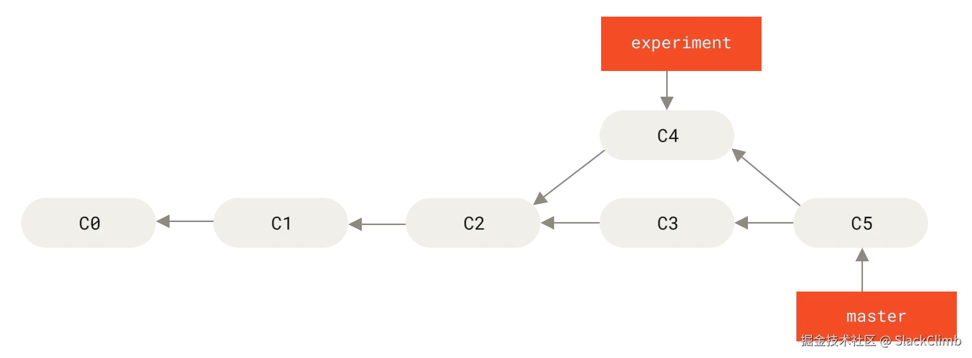 experiment分支的指针移开,把它的基础设置为master分支的最新提交C3。这一步为后续重新应用提交做准备,让experiment分支基于master分支的最新状态。 - 生成新提交:Git 依照保存的提交序列,将