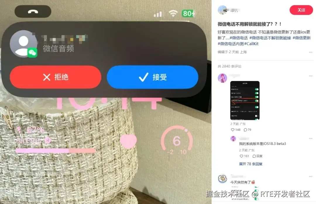 近日,大量微信用户发现,自己的微信突然有了 CallKit 功能,觉得非常意外,相关话题冲上社交平台热搜榜。