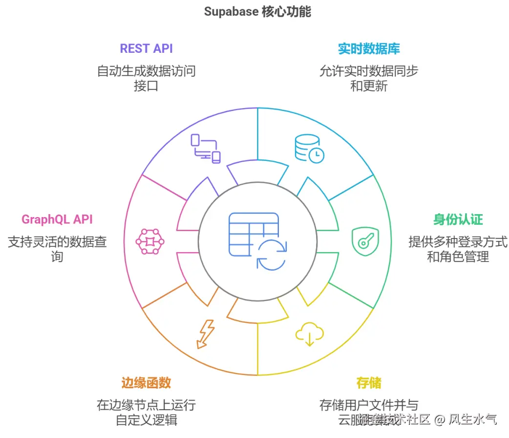 Supabase 作为一个开源的 Firebase 替代品,其核心在于提供了一个完整的后端即服务 (BaaS) 平台,帮助开发者快速构建和部署应用程序。它的核心功能包括:
