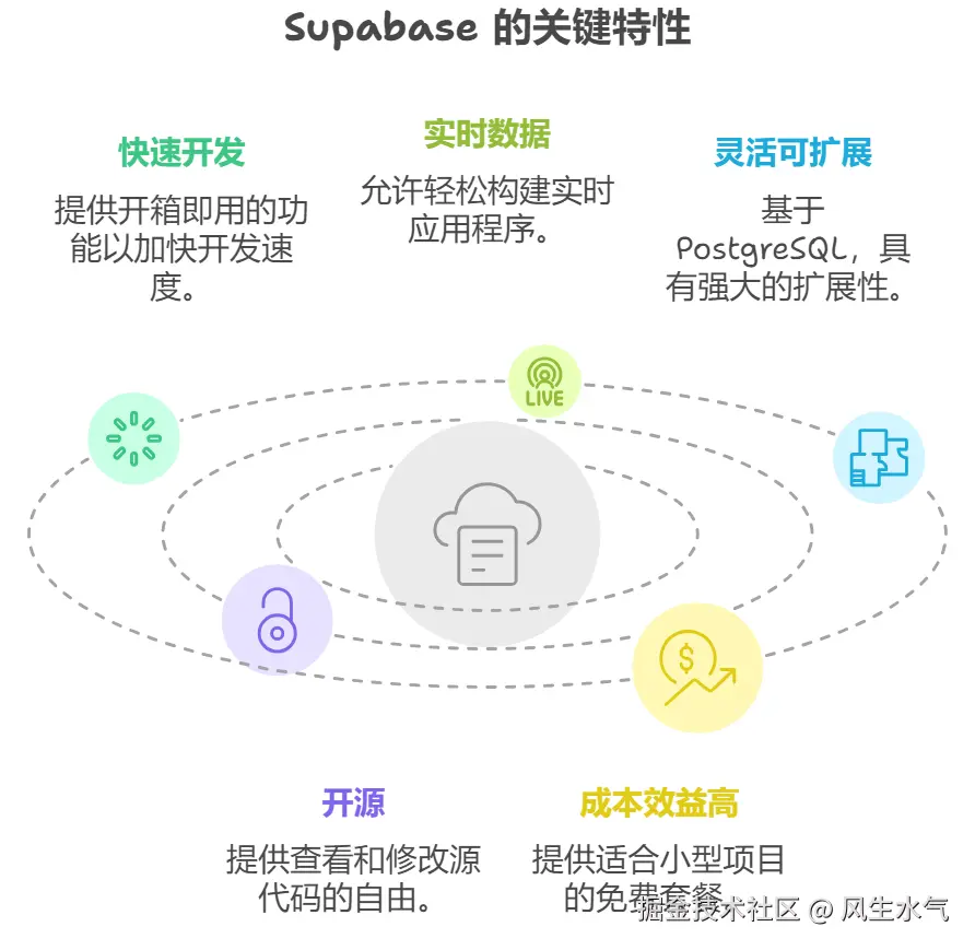 - 快速开发: Supabase 提供了开箱即用的功能,如身份验证、数据库、存储等,大大加快了开发速度。