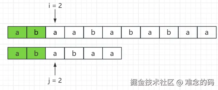 当 j = 2 时,已经有 2 两个字符成功匹配;