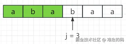 当 j = 3 时,已经有 3 个字符成功匹配;