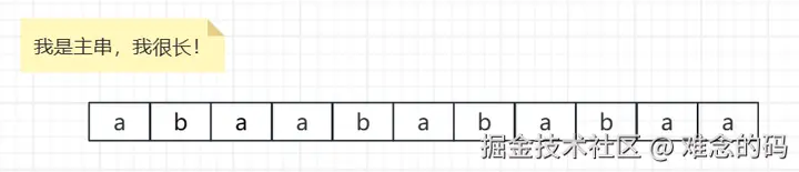 要做什么呢?就是在长的里面寻找短的,主串里面找模式串。