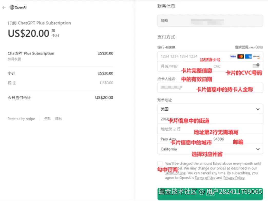- 输入刚才记下的虚拟卡卡号、CVC 和有效期,确认付款即可完成订阅。