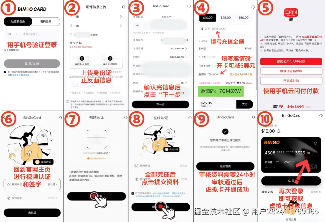 - 按照下图流程注册充值并获取卡片信息