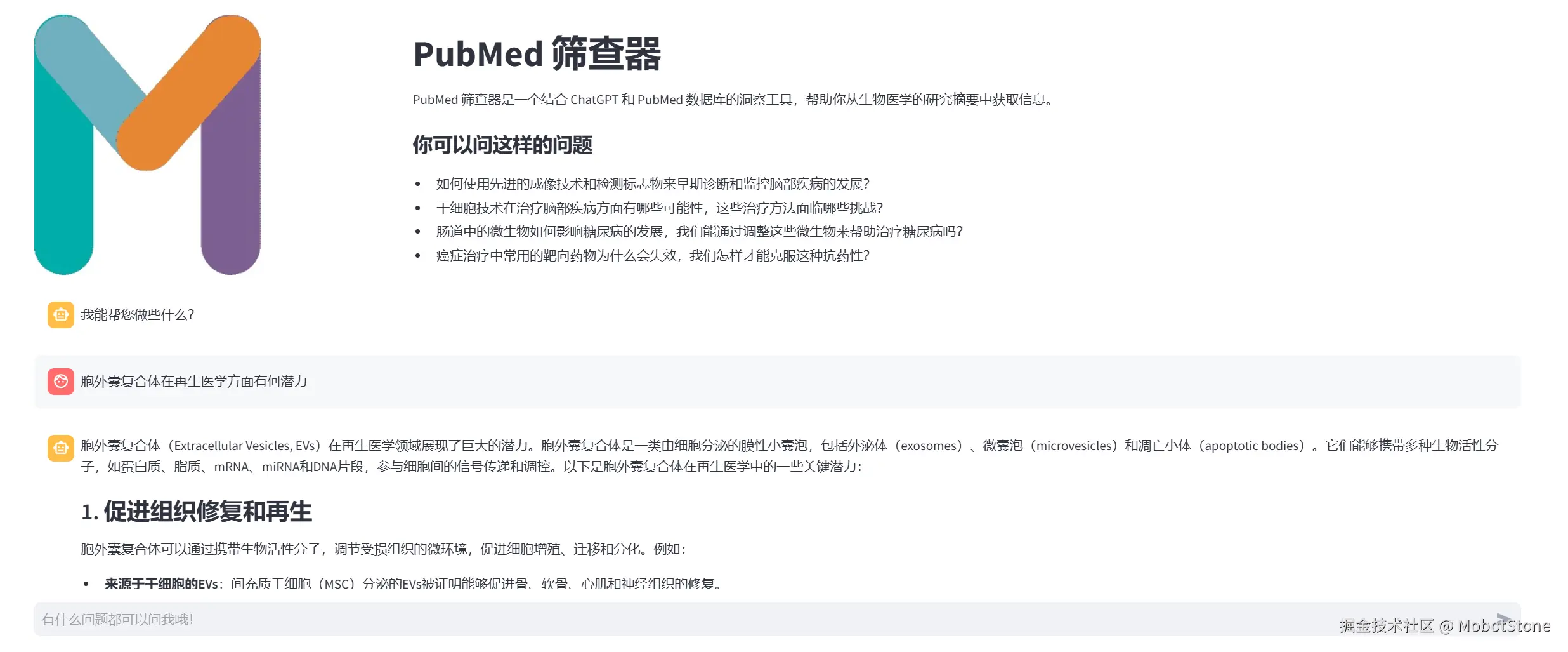 PubMed 筛查器是一个结合 ChatGPT 和 PubMed 数据库的洞察工具,帮助你从生物医学的研究摘要中获取信息。