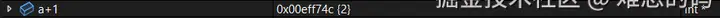 p1 = a,编译器推断出的 p1 的类型为 int*,那么 a 应该也类似于 int* 类型,这一点可以通过查看 a+1 的值确定,a+1 的值是 0x00eff74c,比 a 的值大 4,恰好是一个 int 的大小。