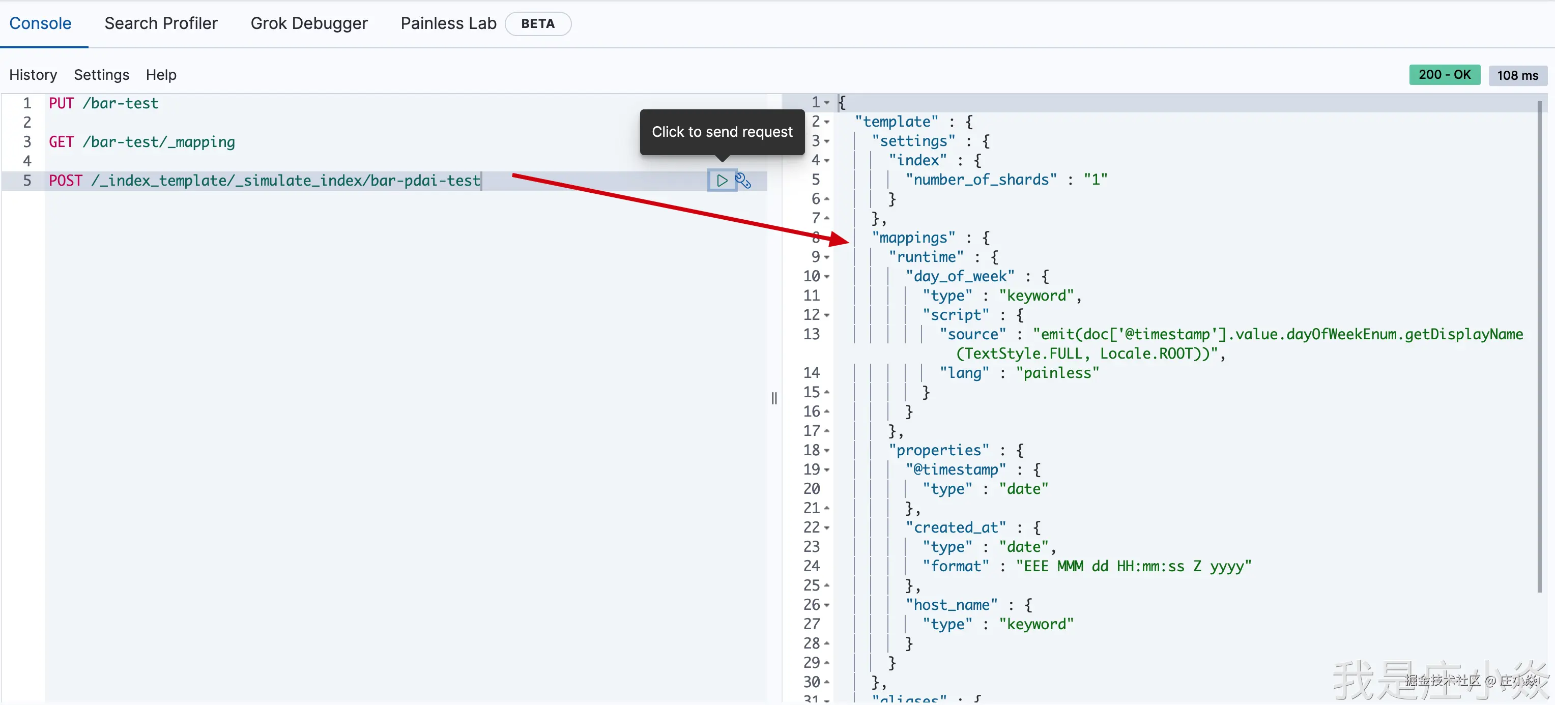 比如上面的template_1, 我们不用创建bar*的索引(这里模拟bar-pdai-test),也可以模拟计算出索引的配置: