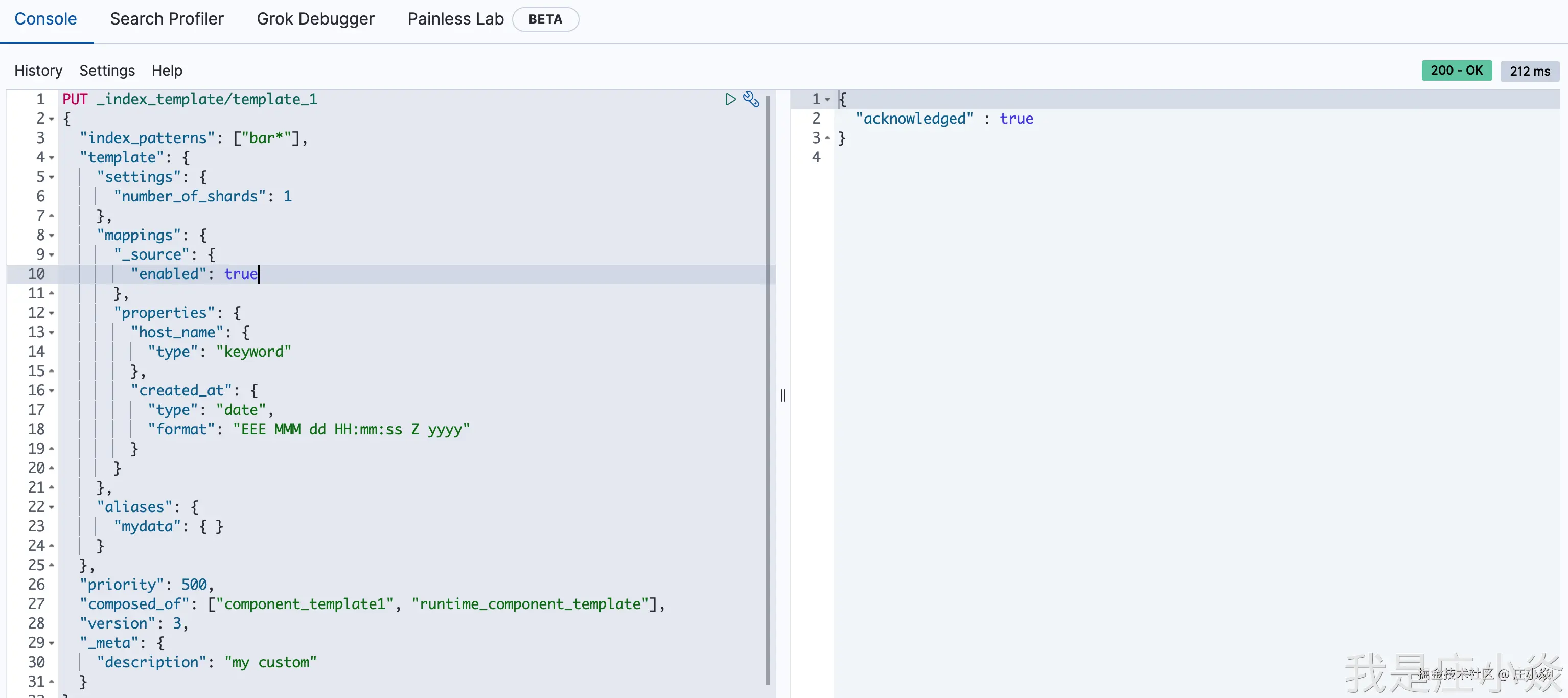 当然,由于template_1模板是由两个组件模板组合的,我们也可以模拟出template_1被组合后的索引配置: