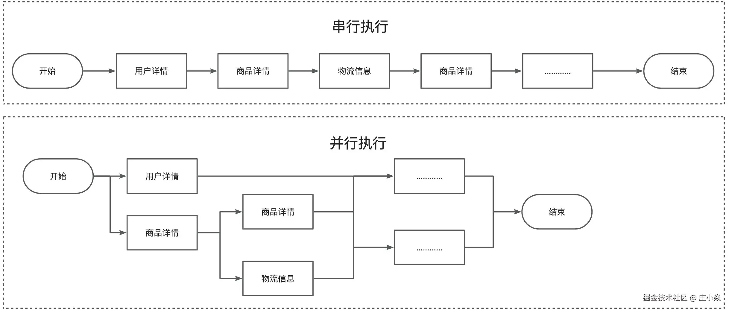 如果是串行(按顺序依次执行每个任务)执行的话,接口的响应速度会非常慢。考虑到这些任务之间有大部分都是无前后顺序关联 的,可以并行执行 ,就比如说调用获取商品详情的时候,可以同时调用获取物流信息。通过并行执行多个任务的方式,接口的响应速度会得到大幅优化。