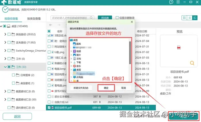 步骤3: 点击完【导出】,在弹窗中选择目标文件的存放地方,然后点击【确定】。