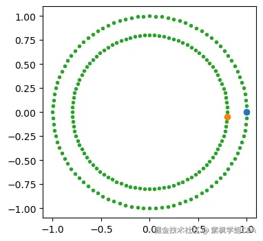 注意参数kernel="knn"。可以发现,若把kernel换成rbf,则无法得到正确传播结果。这是因为rbf是考虑全局的数据分布,因此内圈初始的标签扩散出去后很难被更新。KNN只考虑局部,不会出现此问题。