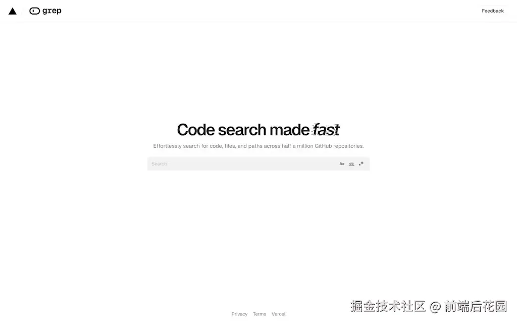 最近我偶然发现了 grep.app,发现它在搜索 GitHub 时的速度和准确性令人惊叹,远超原始的 GitHub 搜索体验。一定要收藏这个网站!(这里是Hunter 说的,开发者是大佬:Vercel联合创始人)