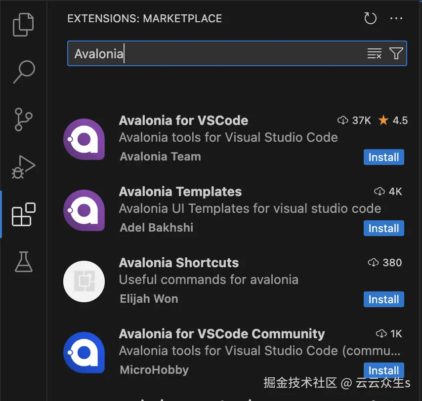搜索 Avalonia 扩展。你肯定想要第一个: