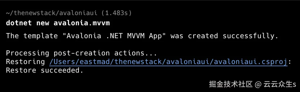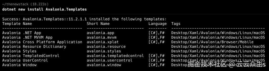 我们将在命令行中使用 dotnet,这将加快创建简单项目的效率。首先,我们安装 Avalonia 模板: