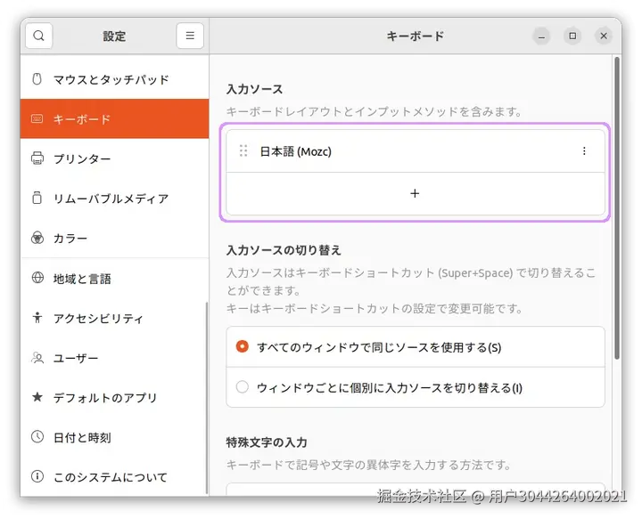 新しいショートカットに慣れるまでは、「Super」と「Ctrl」の打ち間違いが多数発生してしまうと思うので、Ctrl + Space が習慣化するまではMozc以外の入力方法を削除しておくことにします。