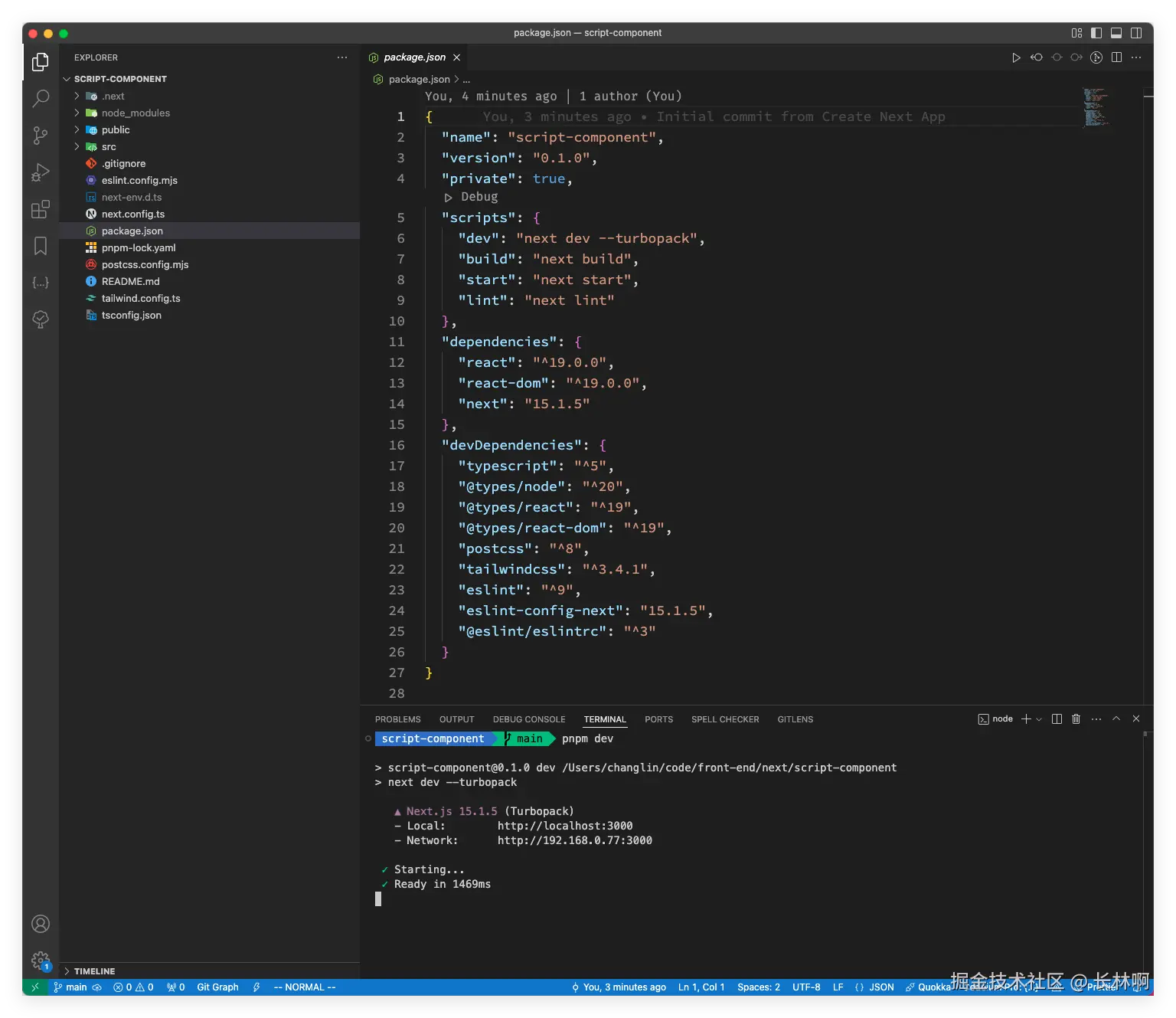 使用自己熟悉的开发者工具打开,并在终端中运行 pnpm dev 的命令行,如下: