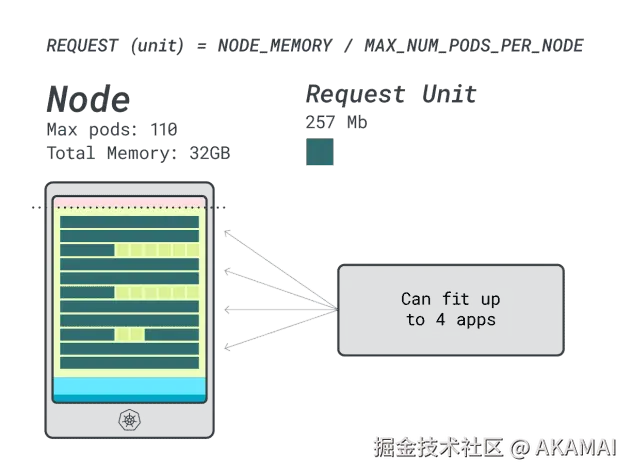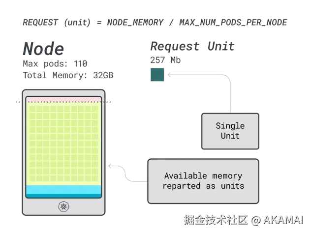 接下来,可以将内存和CPU除以可部署在该实例上的最大Pod数量(例如在LKE中的110个),以获得内存和CPU的单元数量。