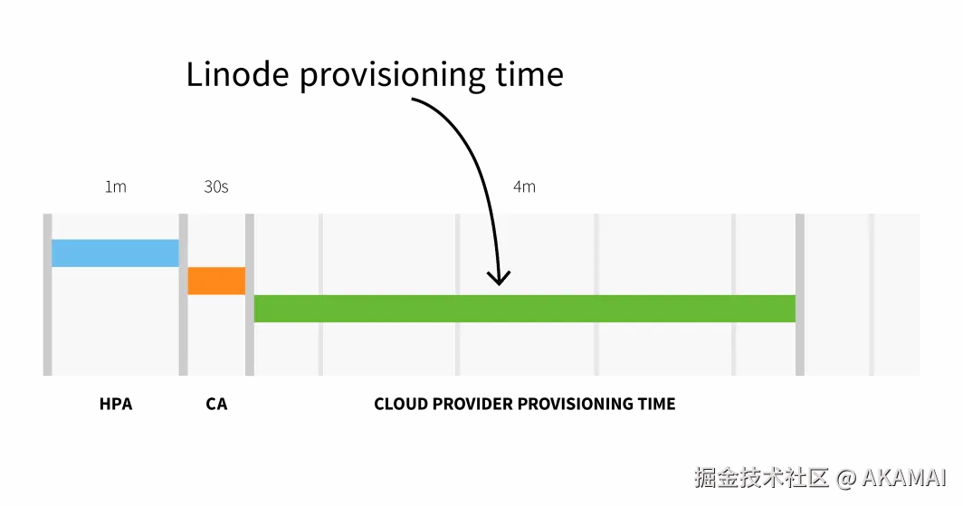 Linode上的节点预配,也就是从Cluster Autoscaler触发API到新创建节点上可以调度Pod,这一过程需要大约3-4分钟时间。