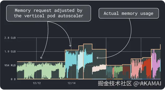 VPA会收集内存和CPU利用率数据,并运行一个回归算法,为我们的部署建议请求和限制。这是一个官方的Kubernetes项目,也可以用于自动调整值:我们可以让控制器直接在YAML中更新请求和限制。