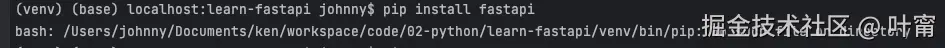 pip is hashed (/Users/johnny/Documents/ken/workspace/code/02-python/learn-fastapi/venv/bin/pip)