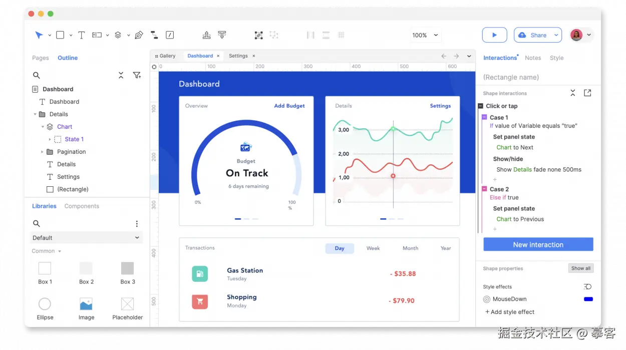 1)全面的交互类型:不仅包含页面交互,还有画板级、组件级、状态级交互,交互效果细腻,产品原型更逼真。