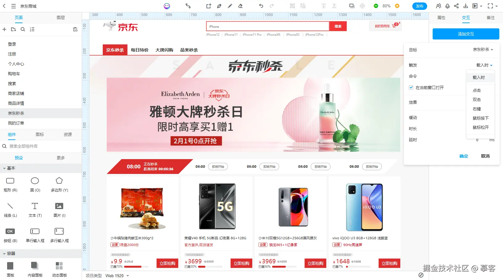 2)自制交互组件:可根据项目所需,自制复杂组件,自定义样式以及交互细节,原型交互设计不受限。