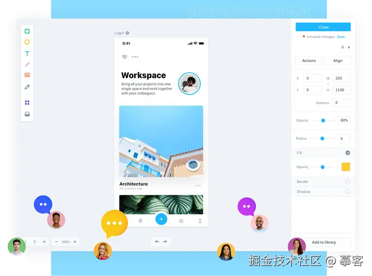 2)组件和设计系统:提供强大的组件管理功能,支持组件复用和全局更新,确保设计的一致性。