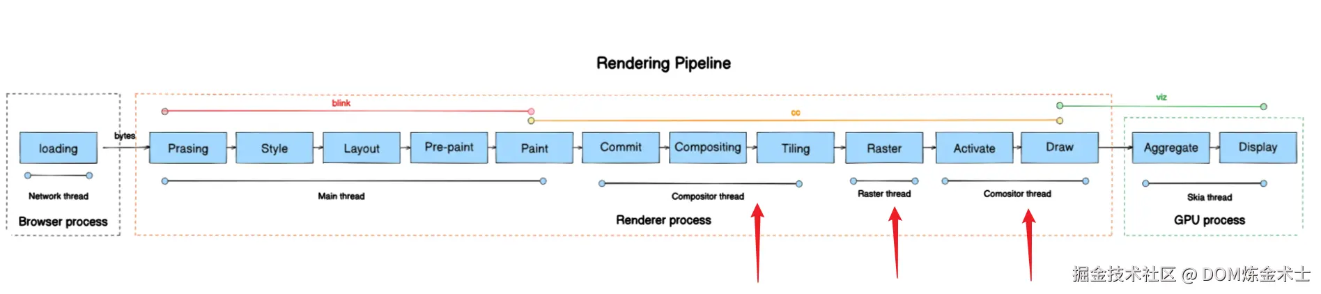 - 协调各个线程:主线程协调渲染流程的不同阶段,以及与其他线程的工作同步。