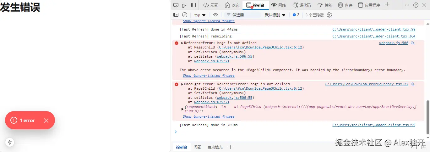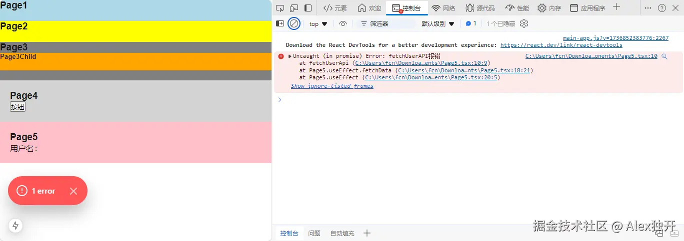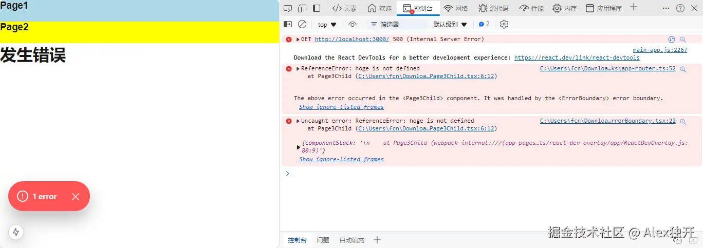 此时,Page3部分将显示ErrorBoundary定义的异常信息组件。