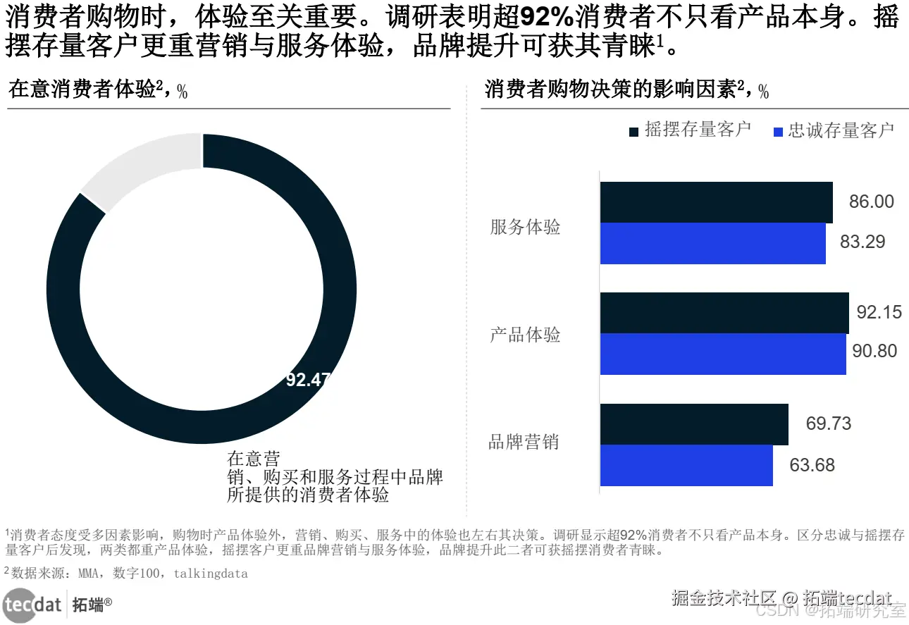 消费者购物时,体验很关键。调研显示超92%消费者不只看产品,忠诚与摇摆存量客户都重体验,品牌提升体验可赢摇摆消费者。
