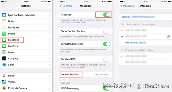 - 然后点击“发送与接收”选项,检查你的Apple ID信息。如果需要,你可以在这里重置iMessage账户。
