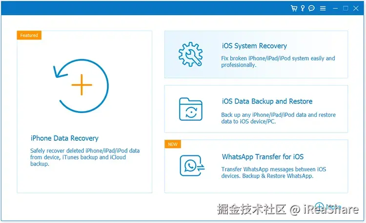 iReaShare iOS System Recovery是一款实用的工具,可以修复iPhone上的消息问题。即使你不是专家,它也可以轻松解决iMessage无法发送的问题。这款工具旨在修复常见的iOS问题,例如iPhone无法发送消息、iPhone卡在苹果标志、iPhone充电失败、iPhone黑屏等。如果你正在寻找一款全面的工具来修复各种iOS问题,可以点击下方按钮下载到电脑。