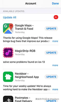 有故障的应用可能导致iPhone黑屏问题,通常在更新后可以解决。为了避免未来黑屏问题,打开应用商店,点击你的账户头像,并选择“更新所有”。