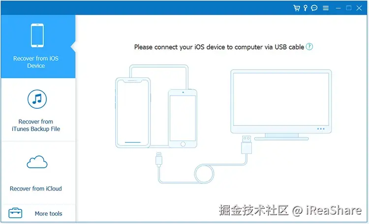 步骤1: 在电脑上下载并安装iReaShare iPhone Data Recovery。启动程序,选择“从iOS设备恢复”模式,并使用USB线将iPhone连接到电脑。