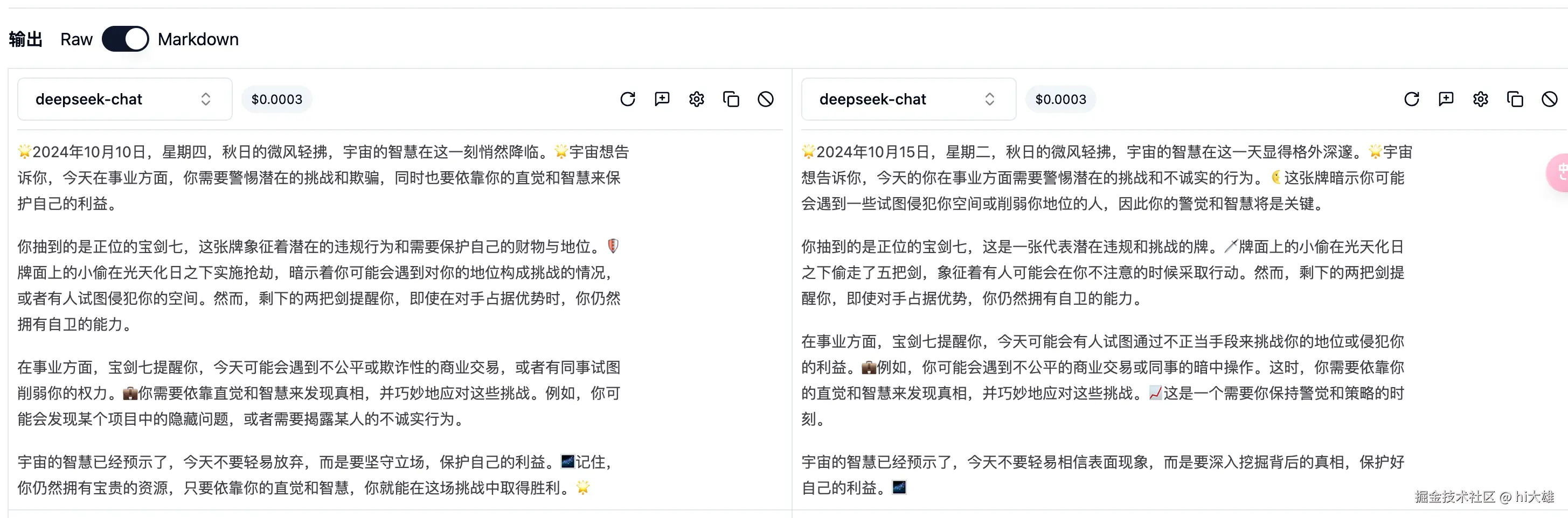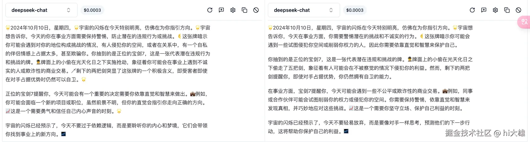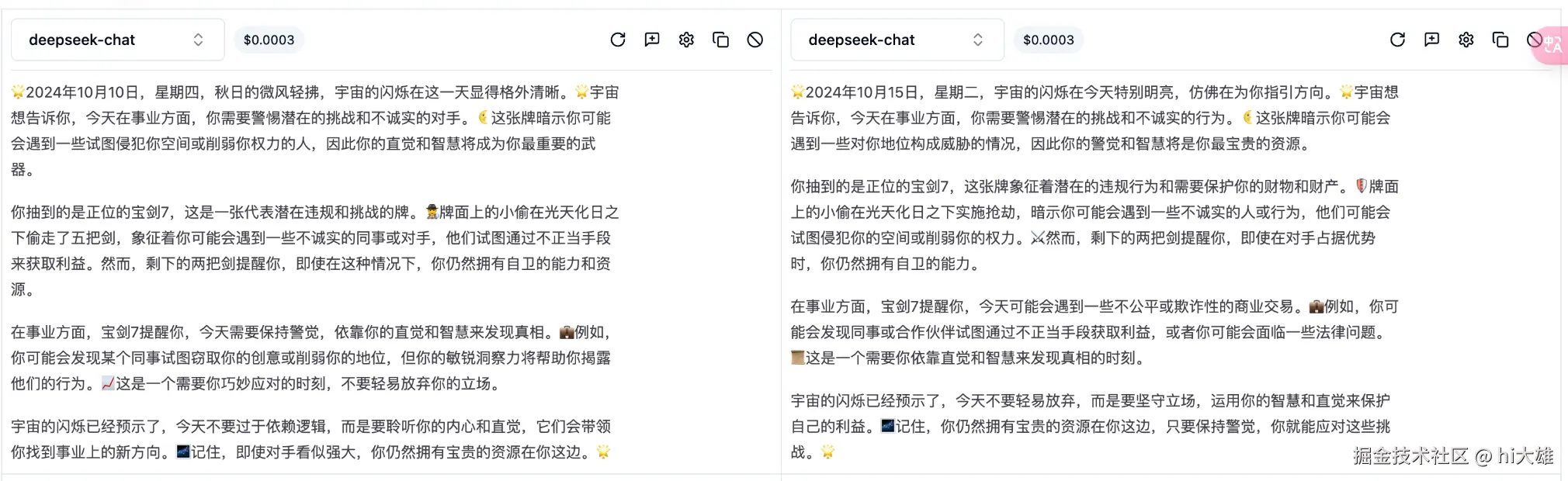 样例二和样例一,在开头都出现了类似【🌟宇宙的闪烁在今天特别明亮,仿佛在为你指引方向】这样的表述,