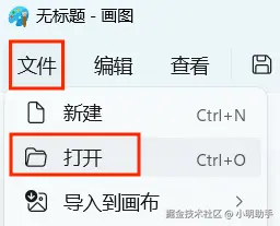 第二步:打开应用后,点击左上角的【文件】按钮,选择【打开】选项,导入需要转换成jpg格式的图片。