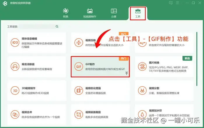 步骤1:打开数据 蛙视频转换器,点击【工具】-【GIF制作】功能。