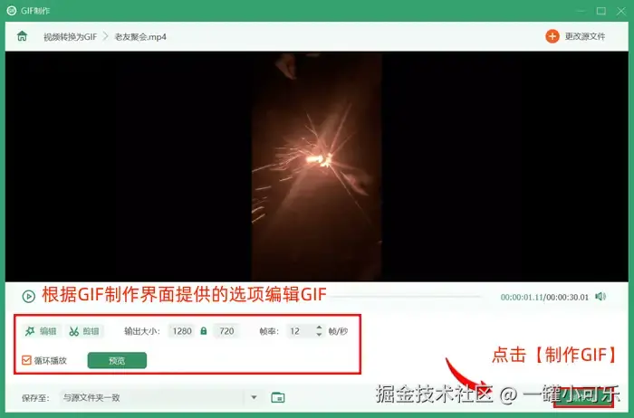 步骤3:根据GIF制作界面提供的选项,并依据自己的需要编辑GIF动图,然后点击【制作GIF】选项即可。