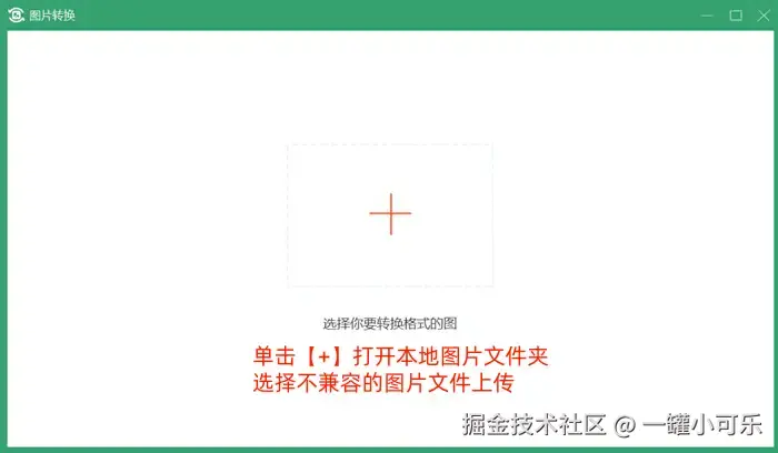 步骤2:单击【+】打开本地图片文件夹,选择不兼容的图片文件上传。