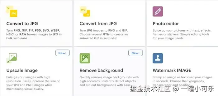 照片格式jpg怎么弄?iloveimg是图像处理的在线平台,提供多种图像编辑和转换功能,并提供了一些额外的编辑功能,如压缩、添加水印、调整大小等。但与Aconvert类似,iloveimg也依赖网络连接,且不能上传冷门的图片格式进行转换。