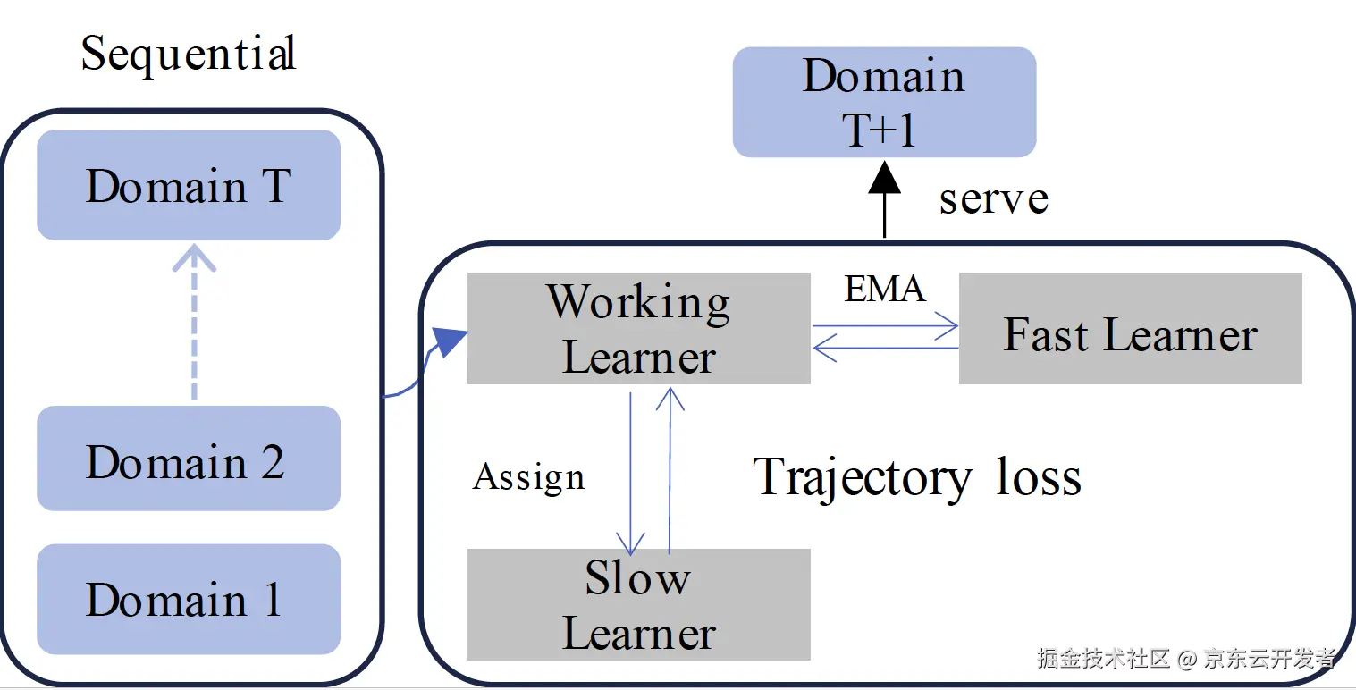 深度模型已经在点击率预估上取得了巨大的进展。然而在建模过程中,深度学习常用的独立同分布假设并不能保证成立,尤其是在在线学习的点击率预估系统中。为了解决这个问题,我们提出了一种新的模型更新框架“快慢轨迹学习”,用于减缓过去和未来之间的领域漂移并加强模型的时序适应能力。该框架的机制主要依赖三个互补且同构的学习器:工作学习器,快学习器,慢学习器;其中工作学习器可以认为是我们正常更新的模型,快学习器利用工作学习器的指数移动平均权重更新,慢学习器则保留上个时间域下的工作学习器权重,除此之外我们还提出了一种轨迹损失,以加强模型的效果。
