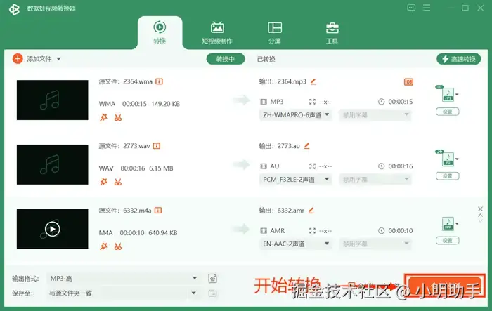 首先,小编要介绍的第一种在线音频格式转换工具是:以数据 蛙视频转换器为代表的专业音频转换软件。数据 蛙视频转换器是一款非常优秀的音视频处理软件,除了支持多种视频格式的转换之外,它还支持多种音频格式的转换,包括常见的MP3、WAV、AAC等音频格式。
