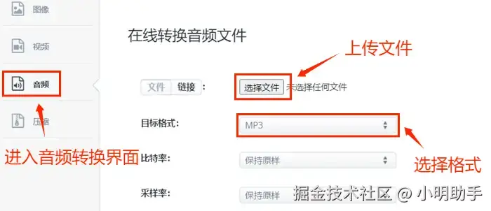 音频格式转换工具二:在线音频转换工具