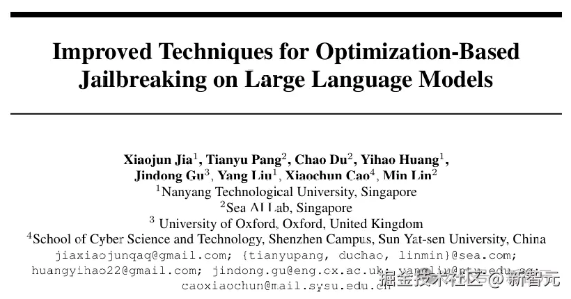南洋理工博士后研究员加小俊,作为一作提出了一种更高效的越狱方法——I-GCG。实验表明,I-GCG 能显著提升原有方法的攻击性能,并对开源 LLM 模型实现了接近 100% 的越狱成功率。