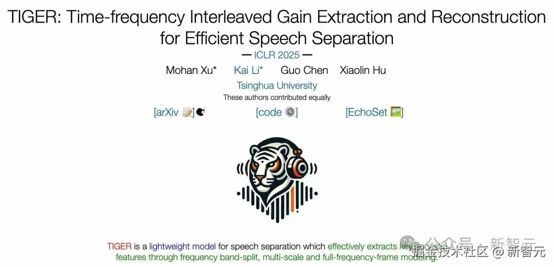 第二篇提出百万参数级语音分离模型 TIGER,构建参数仅 105 万的轻量架构,其中参数量下降 94.3%,计算量下降 95.3%。同时分离质量超越 TF-GridNet,推理速度提升 8.6 倍。
